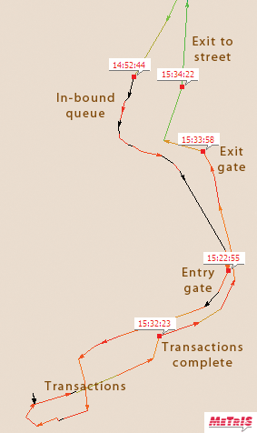 Some terminals are particularly problematic, with queue zones shared between two terminals, and vehicles queuing on an overpass above the terminal operating area. An automated analytical method has to handle all these cases.