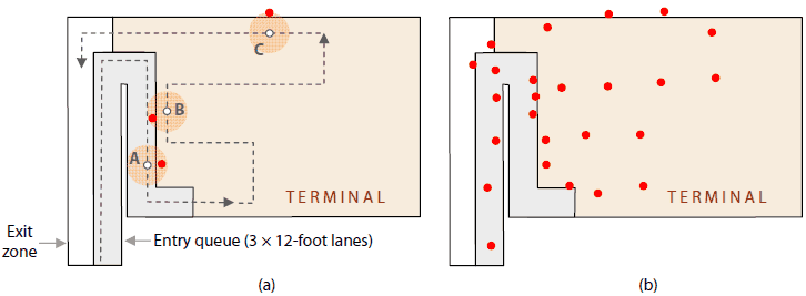 Errors do not affect all visits, perhaps just 10–25% of them, but mistakes on this scale distort statistics. Patterns — that may reveal causes of congestion — get muddied. Because errors depend on terminal layout, some terminals are systematically favored over others, invalidating comparison.